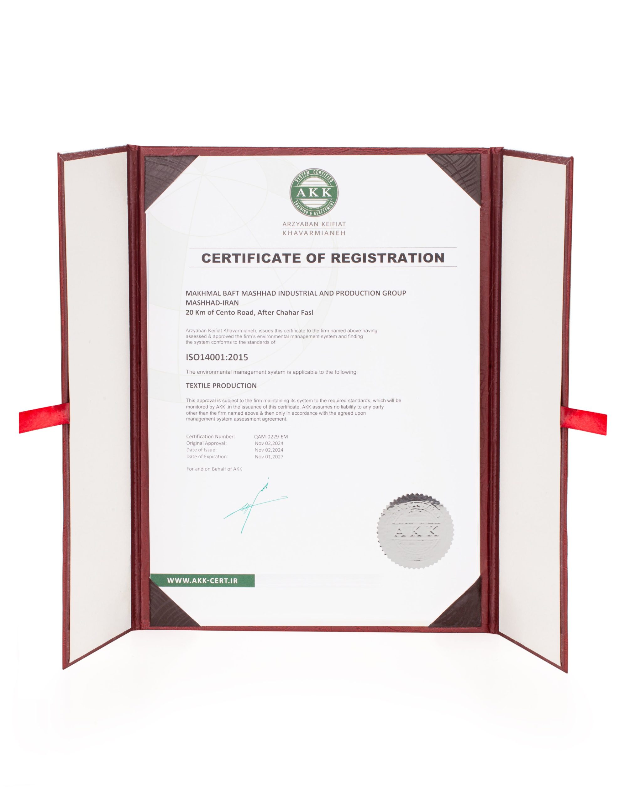 ISO 14001 is the international standard for environmental management systems. For Makhmal Baft Mashhad Industrial Group, adherence to this standard reflects a firm commitment to sustainable practices and environmental responsibility.